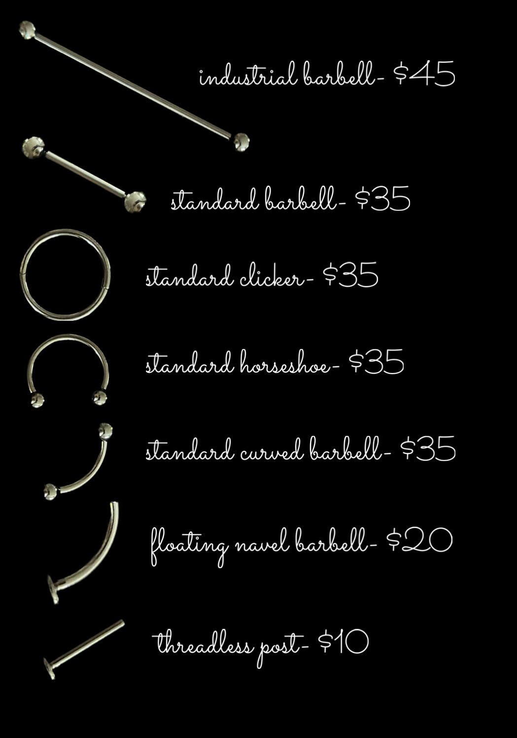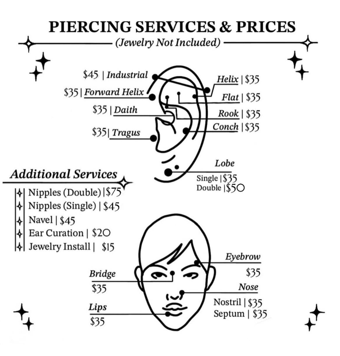 -You can book your appointment through my website by pressing here, or through instagram dms @piercingsbylizzie- Do not feel shy to reach out to me with any questions/concerns. Even though many are convinced, there is no such thing as a dumb question. Every question is valid, and should to be answered.- I am able to accept cash, card, and venmo. When paying with cash, make sure to bring bills for the full amount. Please keep in mind I do not keep any extra bills or coins to create change.