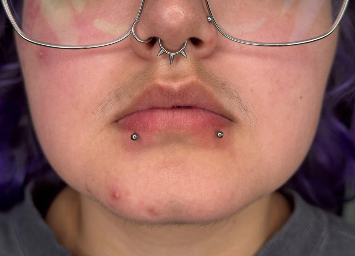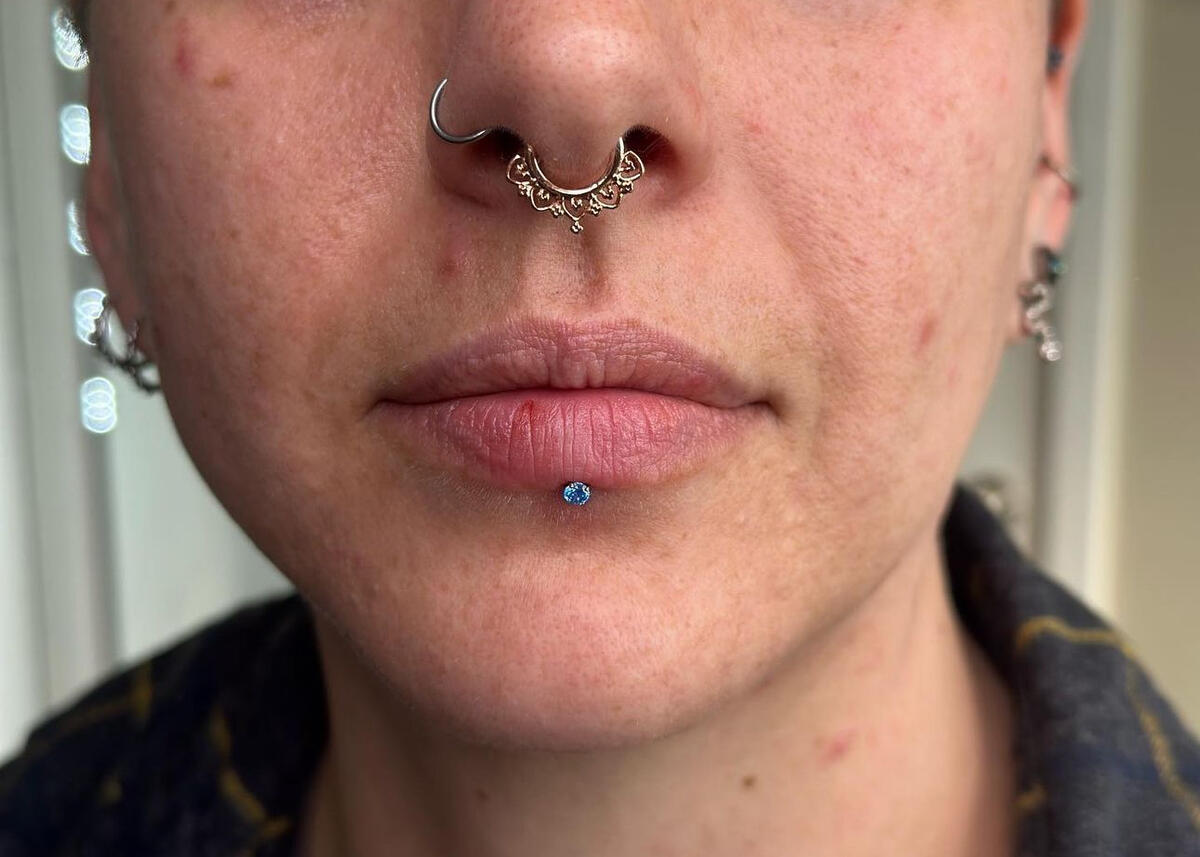 You will need to clean these piercings at least two times a day. You will clean the outer portion of the piercing as listed below in "how to clean"). Cleaning the inner portion of the mouth is a little different- it is recommended that you rinse your mouth with a non-alcoholic mouth wash every time you eat, or drink anything other than water. Some will put their nonalcoholic mouthwash into a small water bottle so they can carry it around with them. Oral health is very important. Brush your teeth once in the morning and once at night, as recommended by dentists. Be extremely cautious around the piercing when brushing your teeth. You will get used to it, but for the first while, make sure you’re being gentle.Lip piercings are fairly easy to heal. The main parts you have to look out for are downsizing, and oral health. Once you get your piercing, it is recommended to wait at least a month before smoking, or consuming any alcoholic beverages. Regular dental check-ups are also a must. All oral piercings have the possibility of harming your teeth and gums if not taken care of properly.Downsizing is extremely important with any oral piercing. You will be pierced with a fairly long piece to guarantee room for swelling because of how much lips swell. Think of when you bite your lip, it gets really swollen for a little bit, then goes down. Bites will heal faster than a piercing, but that’s because we are putting a needle and jewelry all the way through the lip. This will cause the swelling to last significantly longer than just a little bite. So when your swelling goes down, the likelihood of you biting your jewelry skyrockets. Long pieces are also more likely to rub against your gums, (causing recession) or be bit down on (causing chipping or breaking of a tooth).Heal times for lip piercings are nice and short compared to other piercings.Heal time:Labret: ~2-4 months
